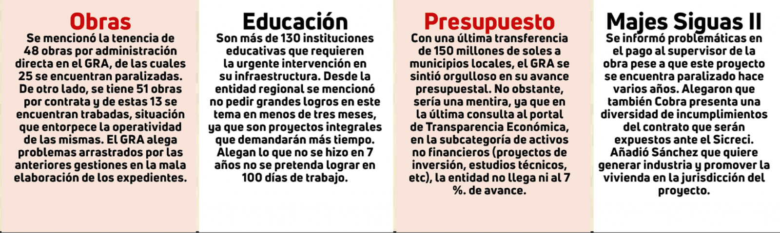 Su gerente general Leonidas Zavala resumió todo el trabajo realizado en los más de 3 meses como algo complicado. Atinó a responsabilizar de toda la problemática que se vive dentro del GRA a las gestiones anteriores.