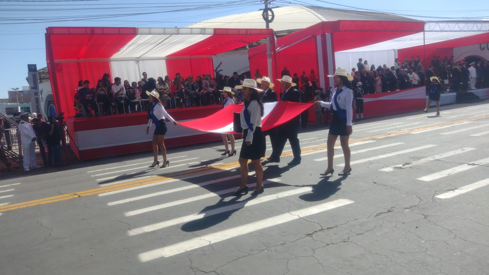 Compatriotas participan de desfiles en la Ciudad Blanca