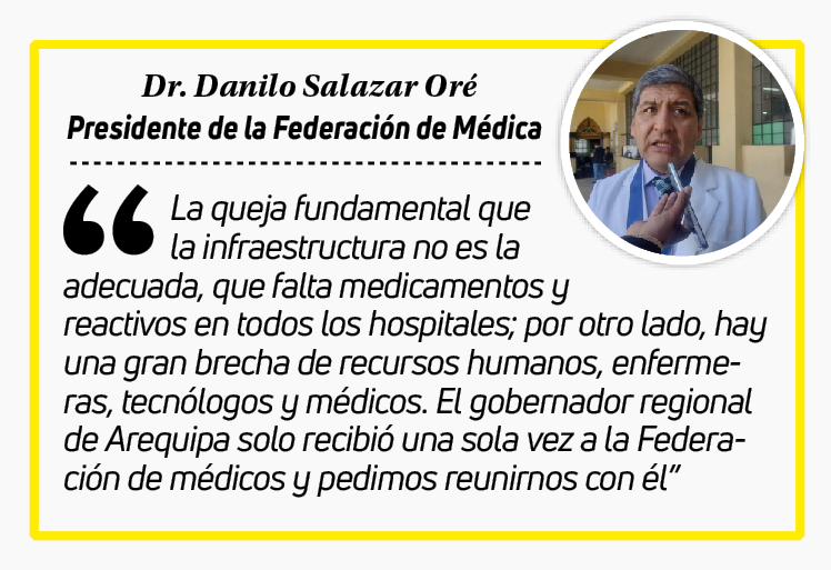 A seis meses del inicio de gestión en el Gobierno Regional de Arequipa (GRA), los médicos exigieron que evalúe el trabajo del gerente de Salud, Walter Oporto. “Obligatoriamente se debe hacer una evaluación de cómo está el sistema del sector salud, si está mejorando o está igual”, solicitó al gobernador, el presidente de la Federación Médica de Arequipa, Óscar Chirinos.