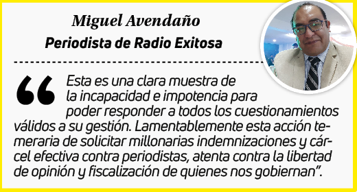 Querellar un objetivo y verídico trabajo periodístico que tiene como misión informar y crear opinión entre la población, es un evidente atentado contra la libertad de expresión y prensa, así lo entendieron los 4 periodistas arequipeños denunciados por el gobernador regional, Rohel Sánchez Sánchez.