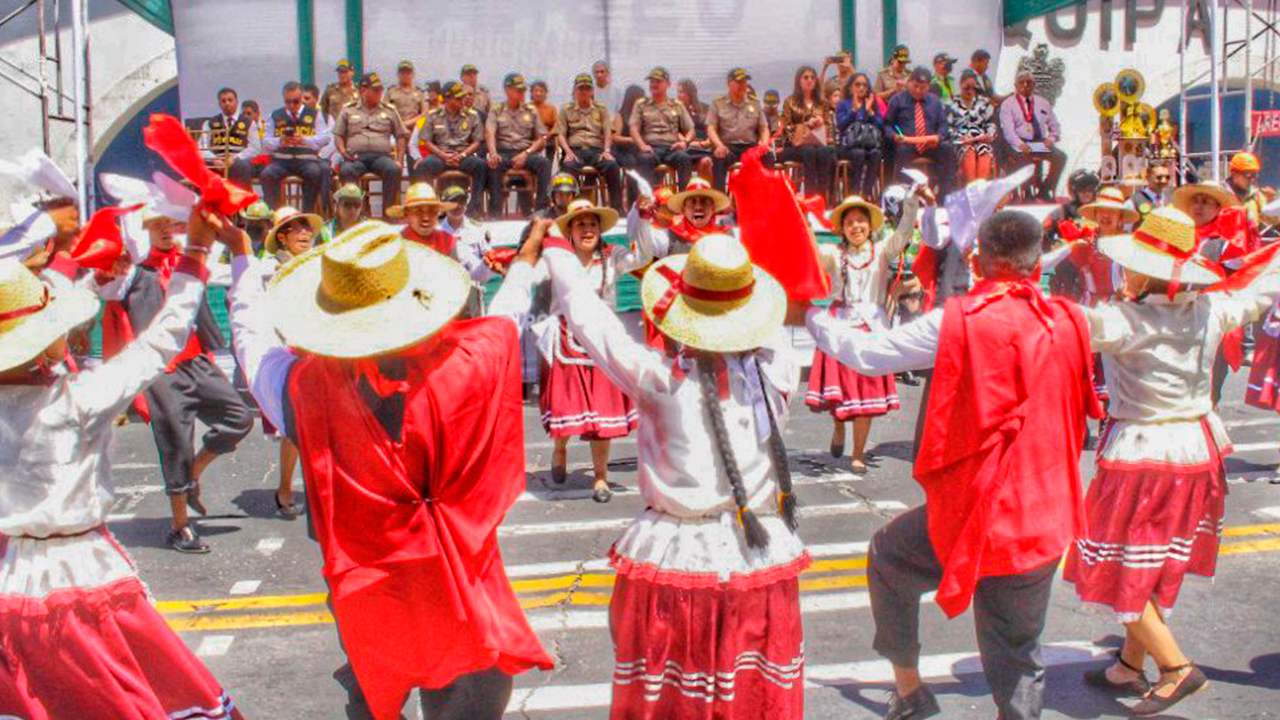 PASACALLE. Este 5 de diciembre la avenida Independencia fue escenario del pasacalle que contó con la participación de 14 agrupaciones. Por su lado, el jefe de la IX Macrepol, general PNP Miguel Cayetano Cuadros, recalcó que los efectivos del orden también defienden la cultura manteniendo los usos y costumbres. El evento se dio con varias presentaciones de danzas folclóricas, seguidas de carros alegóricos y escenificaciones de un operativo o cómo hacer una denuncia en caso de violencia y otros sucesos. “Somos policías, pueblo hecho ley”, acotó el general.