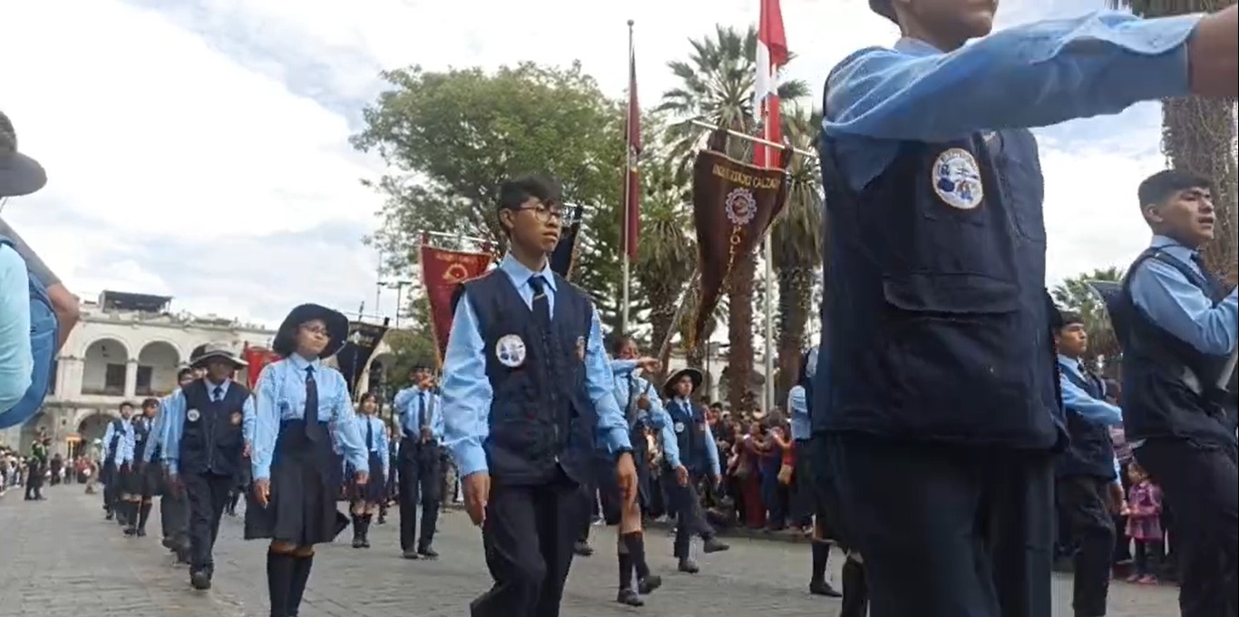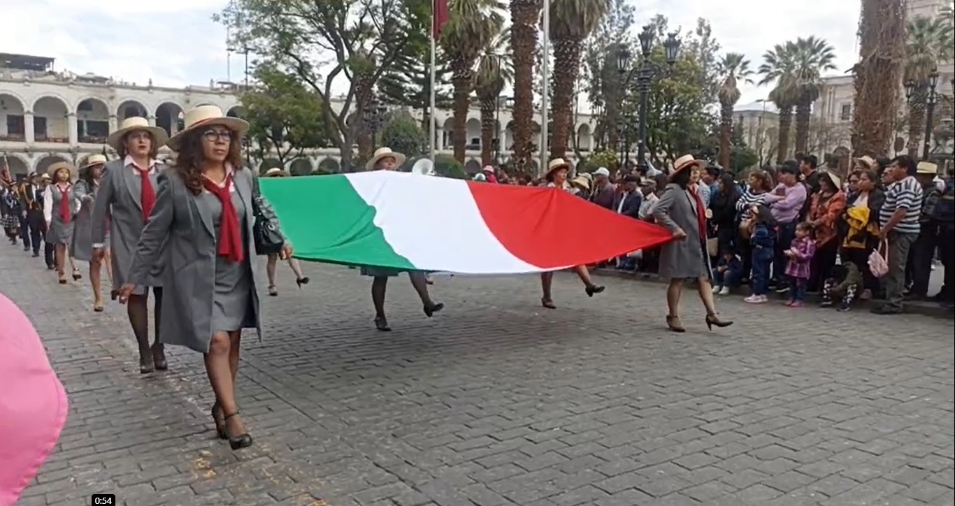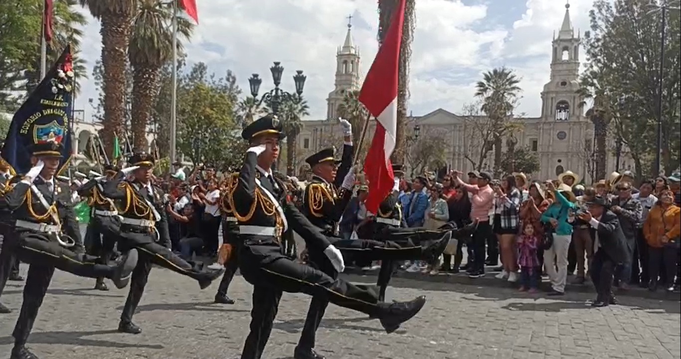Es por ello que este domingo 1 de octubre del 2023, docentes, alumnos, personal administrativo, miembros de instituciones públicas y privadas, así como de periodistas de Arequipa desfilaron por el estrado oficialubicado frente a Portal de la Municipalidad Provincial de Arequipa en la plaza de Armas de la Ciudad Blanca, luego de haber realizado el izamiento del máximo símbolo patria: la bandera del Perú.
