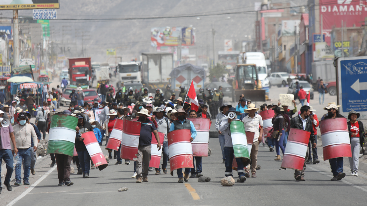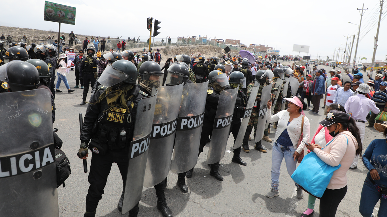 Nuevamente el puente Añashuayco, uno de los principales puntos de ingreso y salida de Arequipa, fue escenario de roces entre manifestantes y policías.