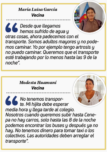 Los vecinos han solicitado que los vehículos pequeños o combis puedan llegar al lugar, pero la concesionaria de esta zona no accedió a sus requerimientos.