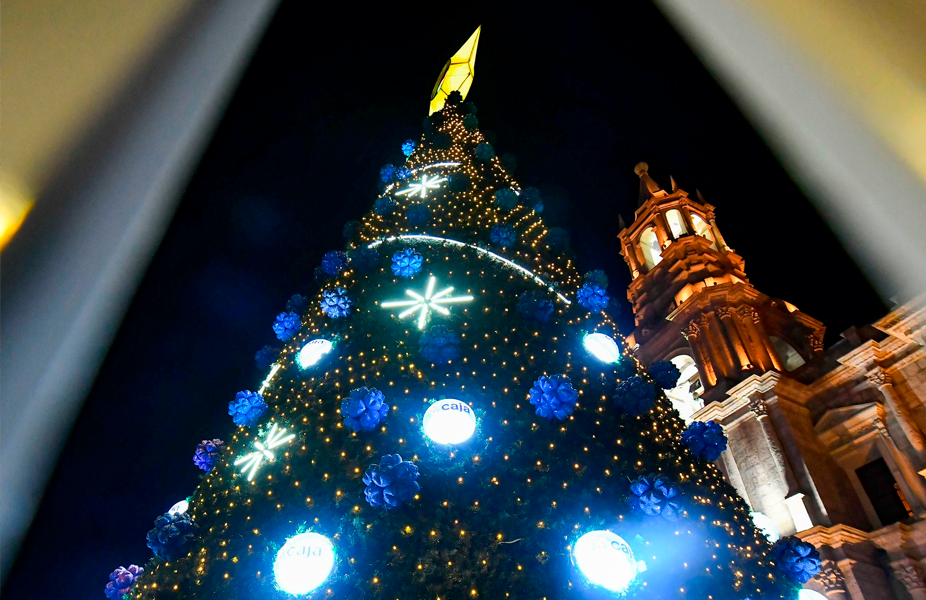 En marco del aniversario de la declaración del Centro Histórico como herencia mundial, la presidente del directorio de Caja Arequipa, María Pía Palacios, y el alcalde provincial Víctor Hugo Rivera, se acercaron al árbol de Navidad ubicado al lado derecho del frontis de la Catedral para encenderlo rodeado de autoridades, prensa, turistas y muchas familias locales, dando inicio a las fiestas navideñas en la ciudad.