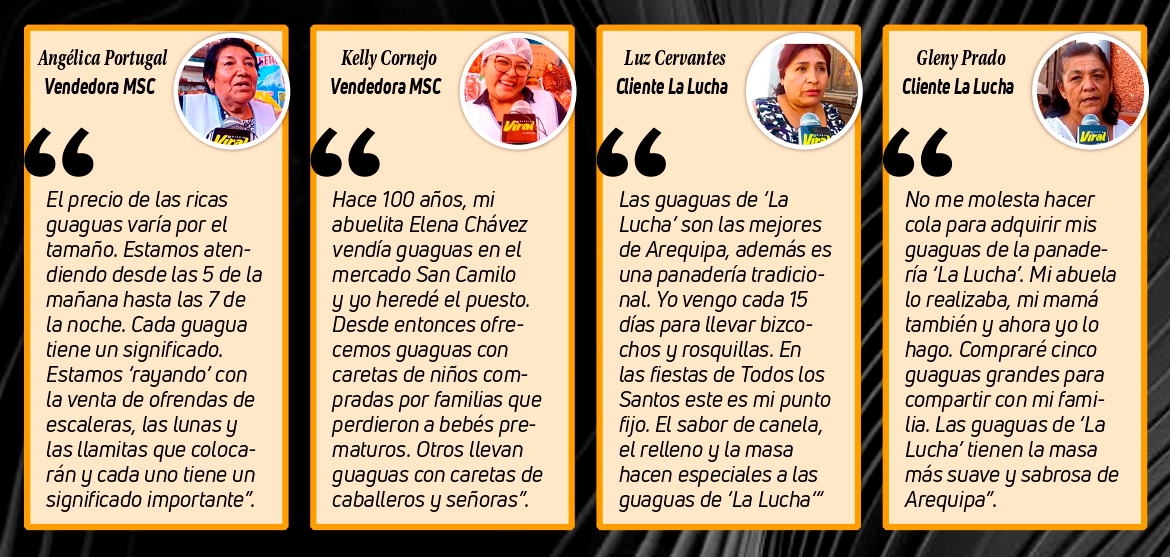 La guagua es una tradición en el Perú y en las ocho provincias de Arequipa no es la excepción. Este bizcocho cobra importancia en noviembre porque los parientes lo ofrendan a sus finados en el Día de Todos los Santos y también se comparten en la mesa de las familias para unirse y así recordar a sus seres queridos hasta el 2 de noviembre, fecha en que se conmemora el Día de los Difuntos.